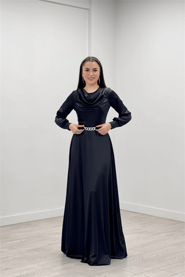 Saten Kumaş Degaje Yaka Abiye Elbise