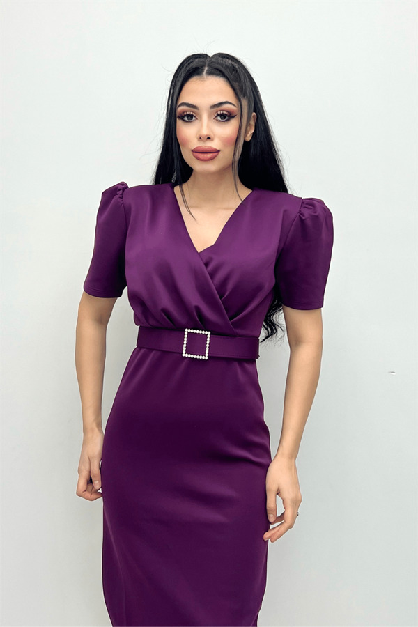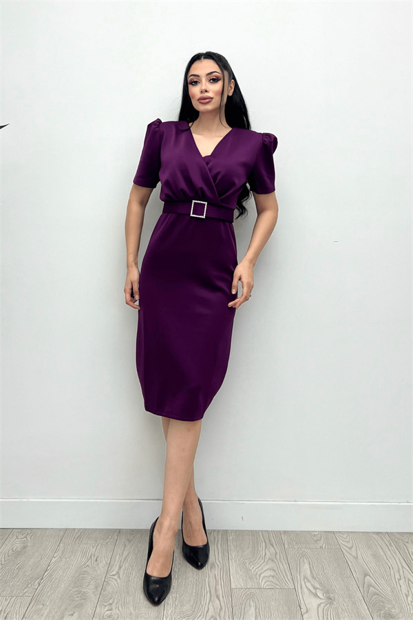 Scuba Kumaş Kemer Detaylı Kalem Elbise