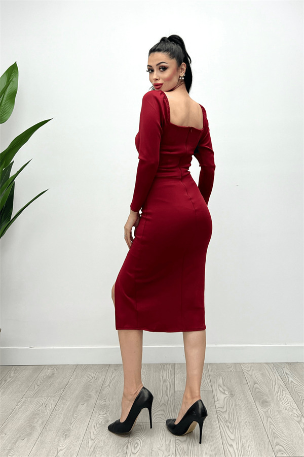 Scuba Kumaş Yırtmaç Detaylı Elbise