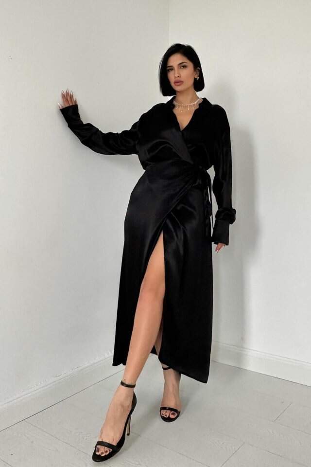 Siyah Kuşaklı Gömlek Elbise