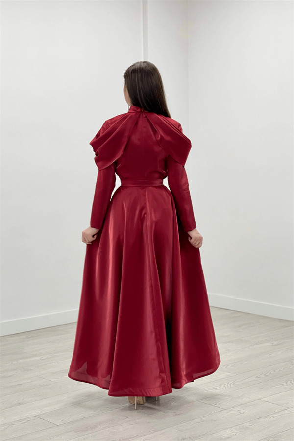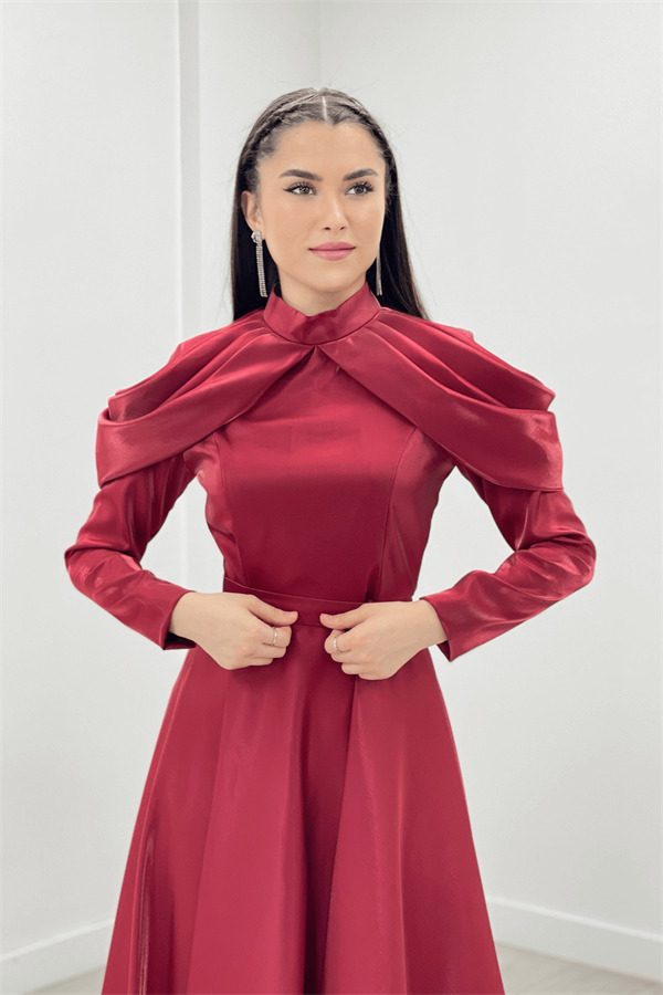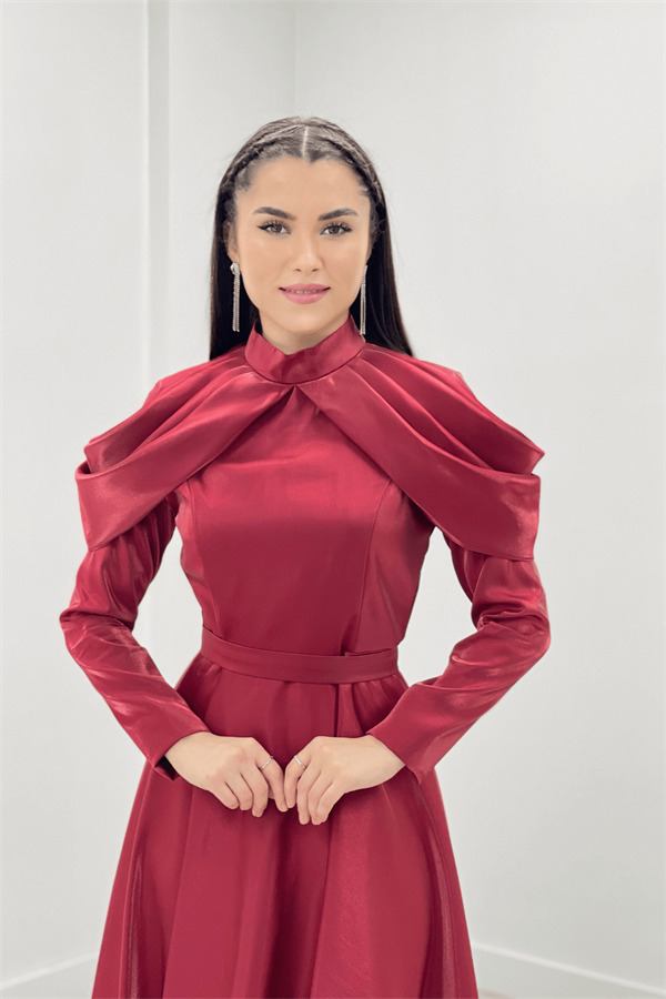 Tafta Saten Kumaş Omuz Detaylı Abiye Elbise