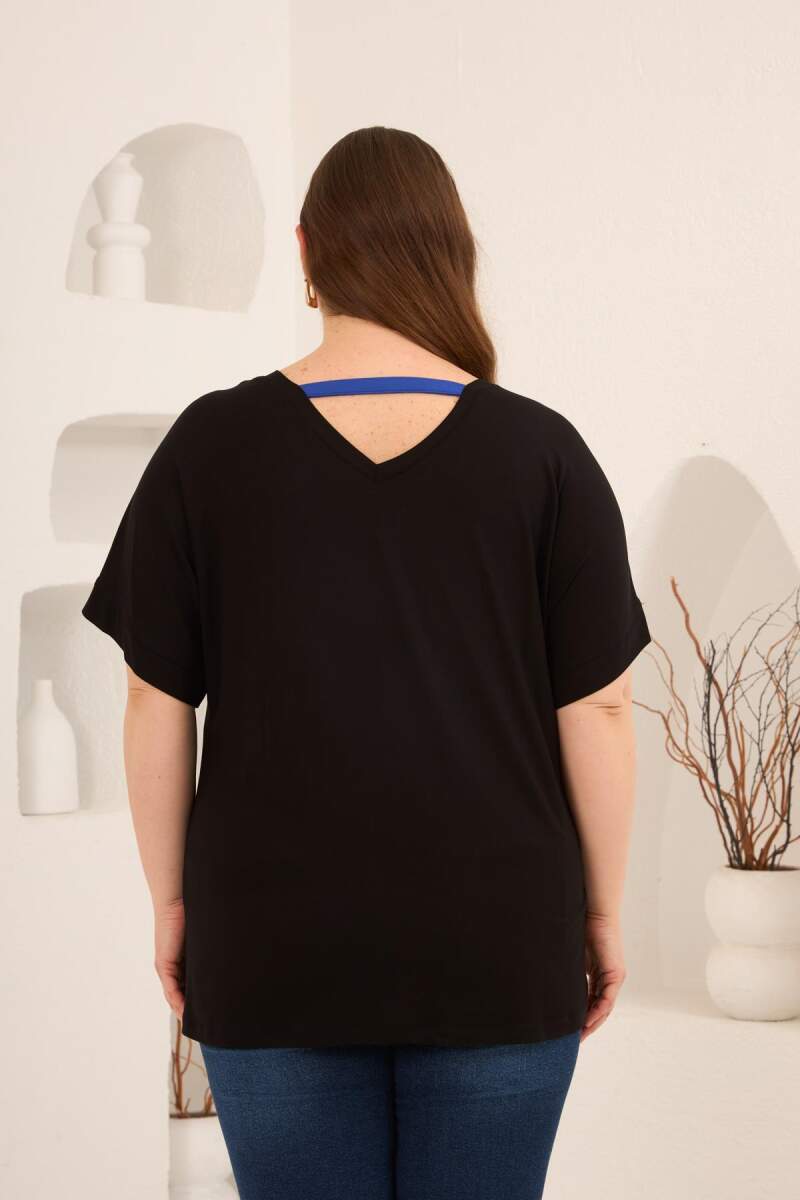Taş Baskılı Büyük Beden Garnili Tişört Siyahsaks