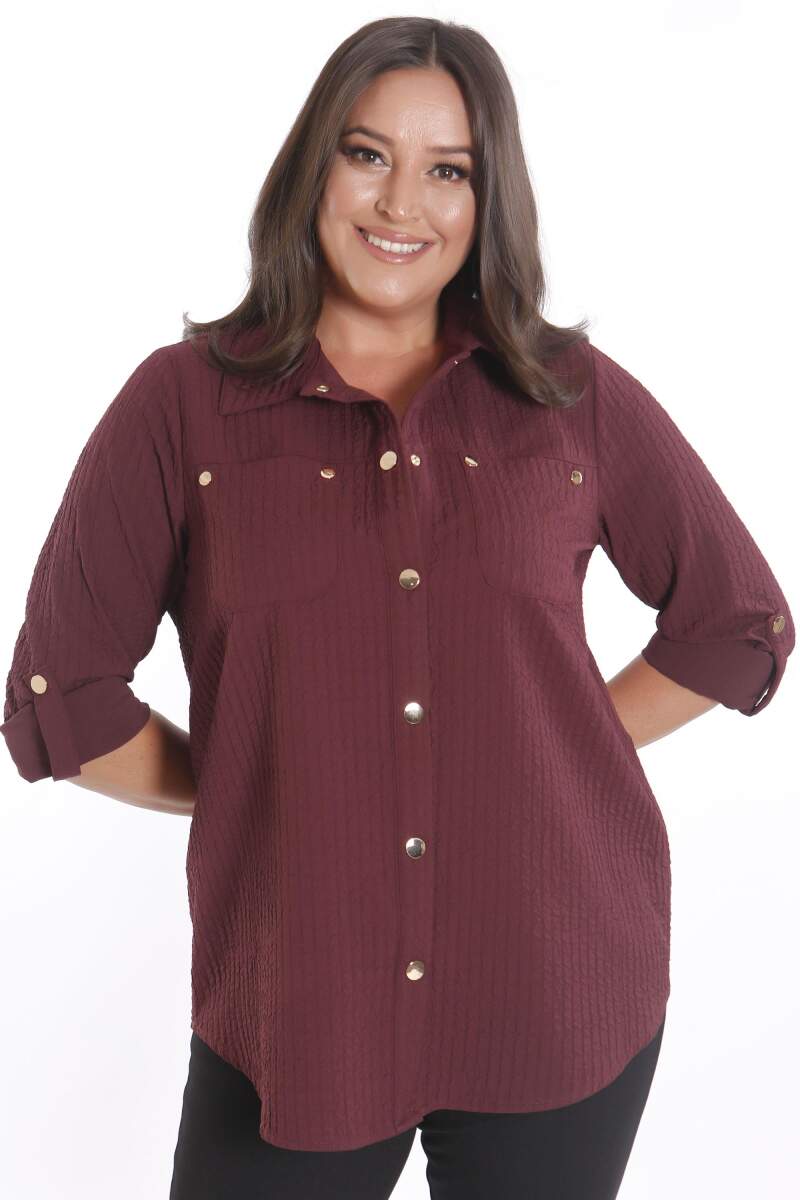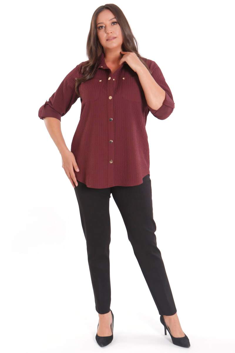 Trend42plus Büyük Beden Çıt Çıt Düğmeli ve Cep Detaylı Bordo Gömlek, sonbahar ve kış aylarının bitmeyen enerjisini gömlek ile yakala! Hoş dokusu ve cıvıl cıvıl renkleri ile seni büyüleyecek olan bu parçayı kumaş pantolonlar ile birleştirmek isteyebilirsin. Hafif dokusu ile rahatlığı hissederken en yoğun günlerin bile enerjik geçecek! :)