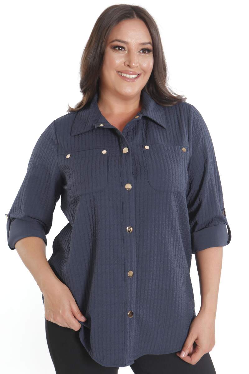 Trend42plus Büyük Beden Çıt Çıt Düğmeli ve Cep Detaylı Lacivert Gömlek, sonbahar ve kış aylarının bitmeyen enerjisini gömlek ile yakala! Hoş dokusu ve cıvıl cıvıl renkleri ile seni büyüleyecek olan bu parçayı kumaş pantolonlar ile birleştirmek isteyebilirsin. Hafif dokusu ile rahatlığı hissederken en yoğun günlerin bile enerjik geçecek! :)