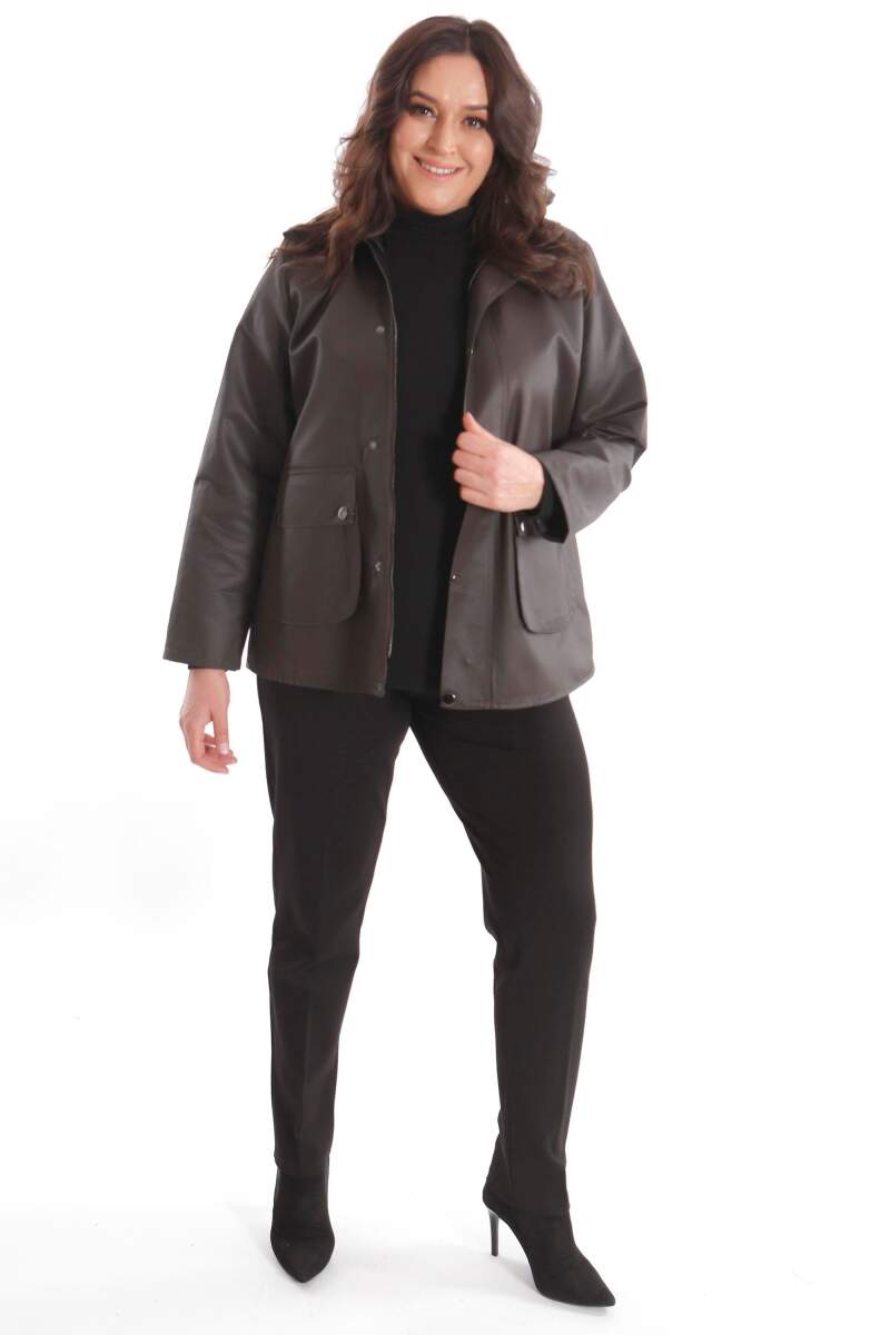 Trend42plus Büyük Beden Kadife Yakalı Çıt Çıt Düğme Detaylı Kahverengi Kaban