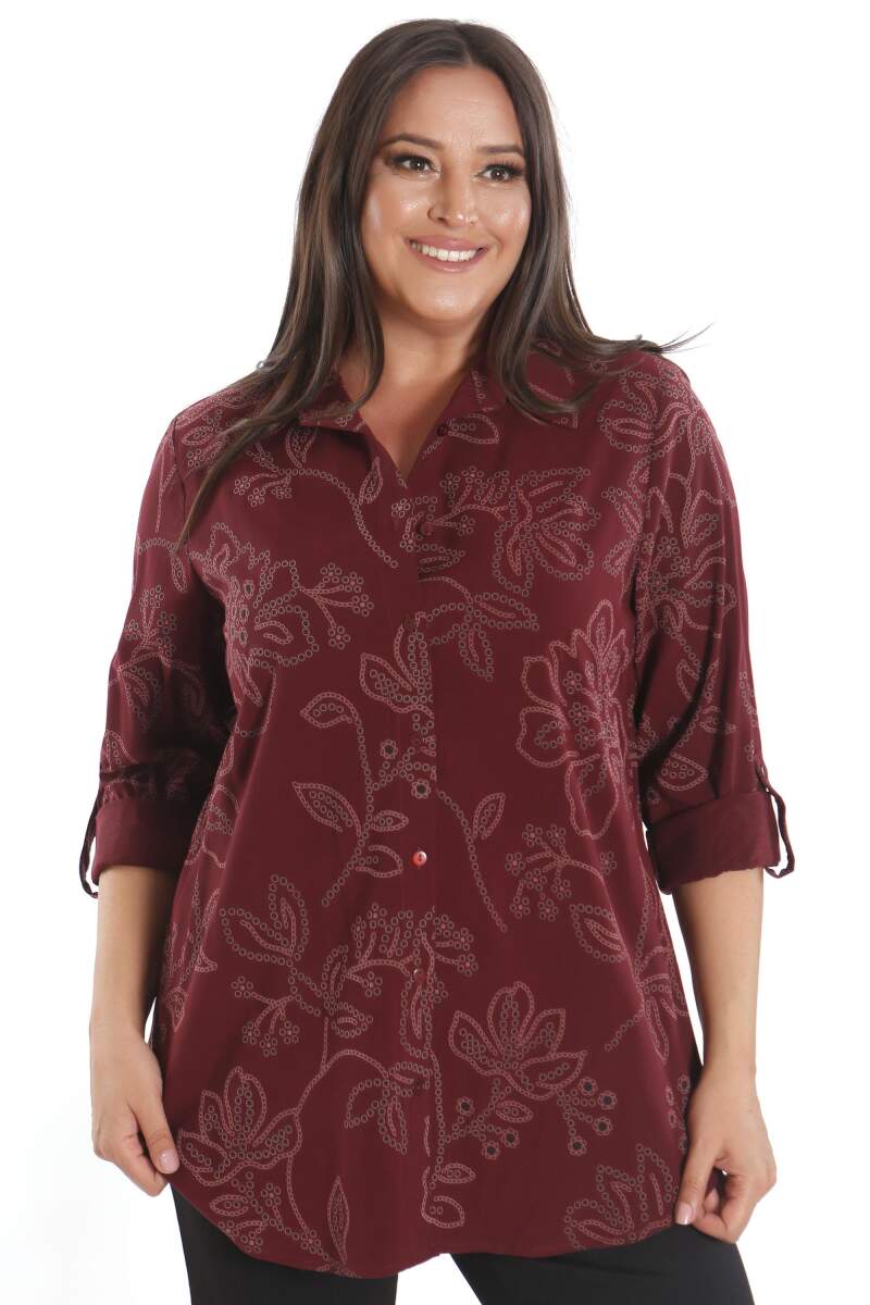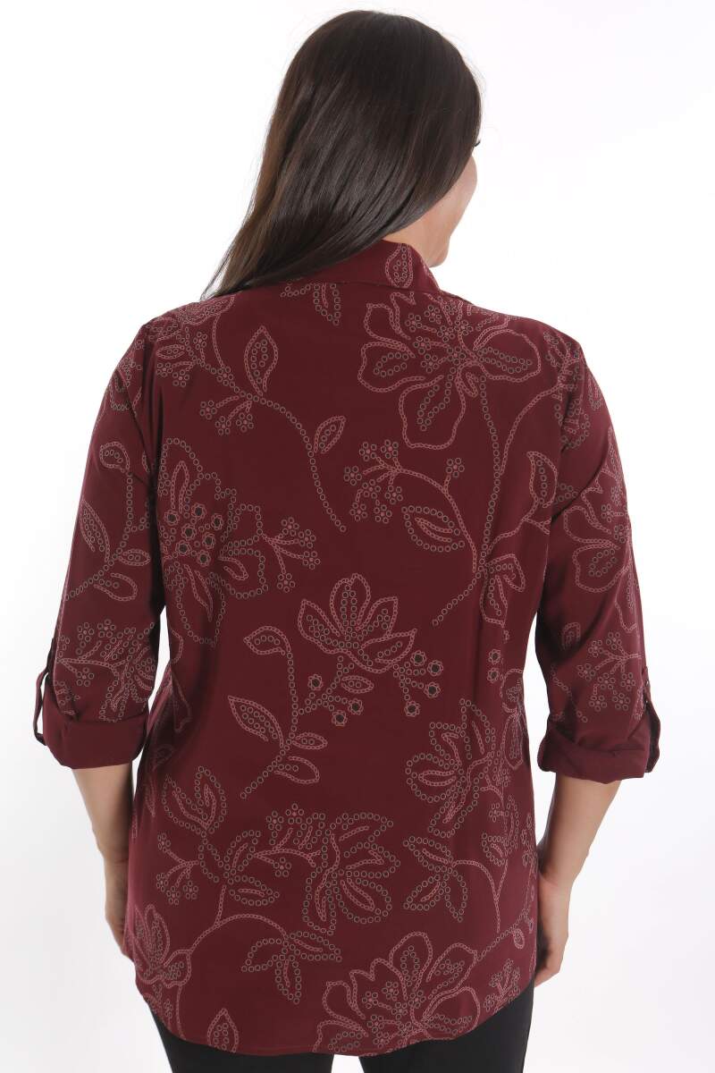 Trend42plus Büyük Beden Kendinden Desenli Bordo Gömlek, sonbahar ve kış aylarının bitmeyen enerjisini gömlek ile yakala! Hoş dokusu ve cıvıl cıvıl renkleri ile seni büyüleyecek olan bu parçayı kumaş pantolonlar ile birleştirmek isteyebilirsin. Hafif dokusu ile rahatlığı hissederken en yoğun günlerin bile enerjik geçecek! :)