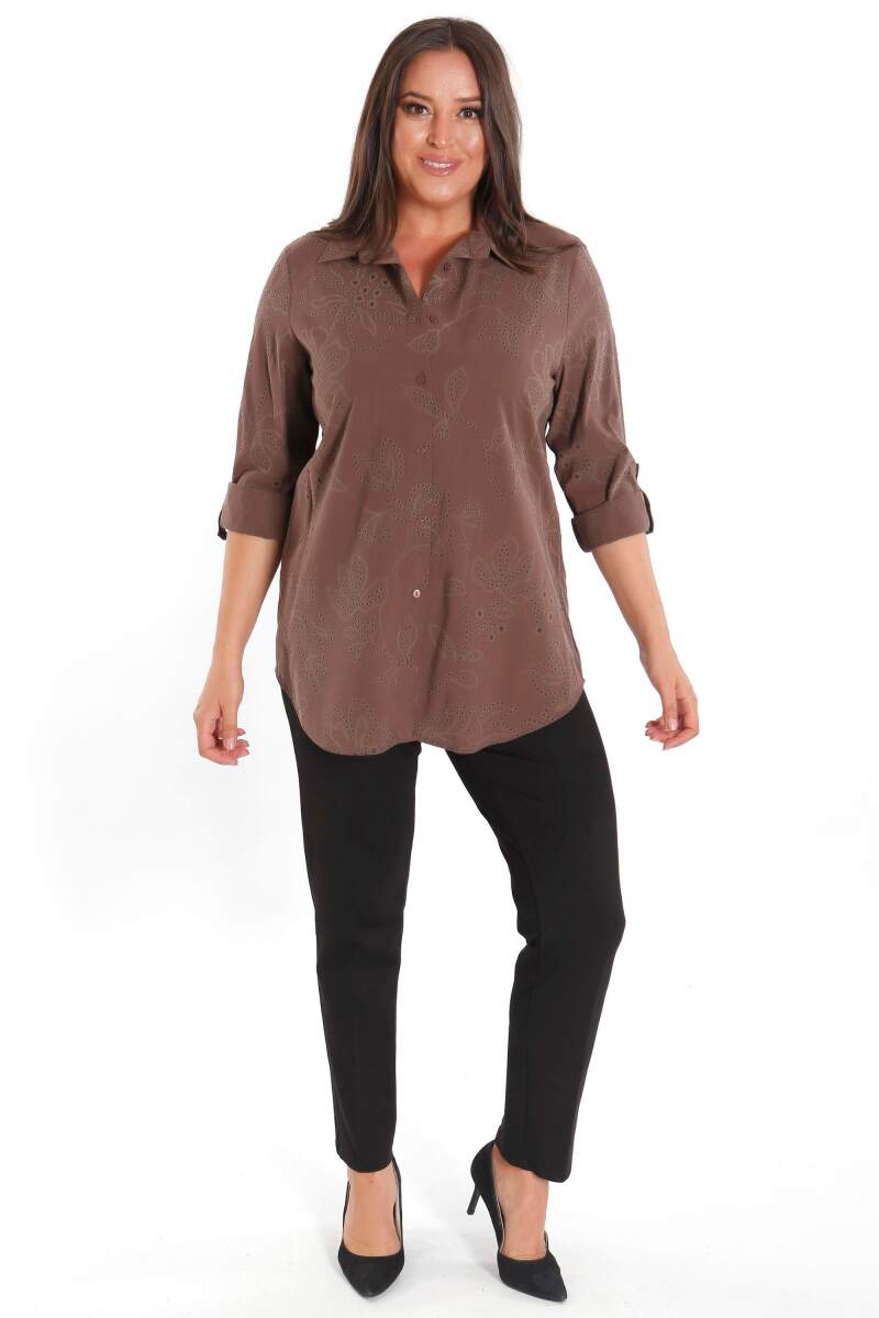 Trend42plus Büyük Beden Kendinden Desenli Kahverengi Gömlek, sonbahar ve kış aylarının bitmeyen enerjisini gömlek ile yakala! Hoş dokusu ve cıvıl cıvıl renkleri ile seni büyüleyecek olan bu parçayı kumaş pantolonlar ile birleştirmek isteyebilirsin. Hafif dokusu ile rahatlığı hissederken en yoğun günlerin bile enerjik geçecek! :)
