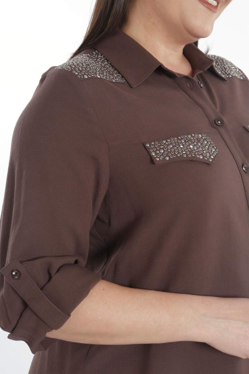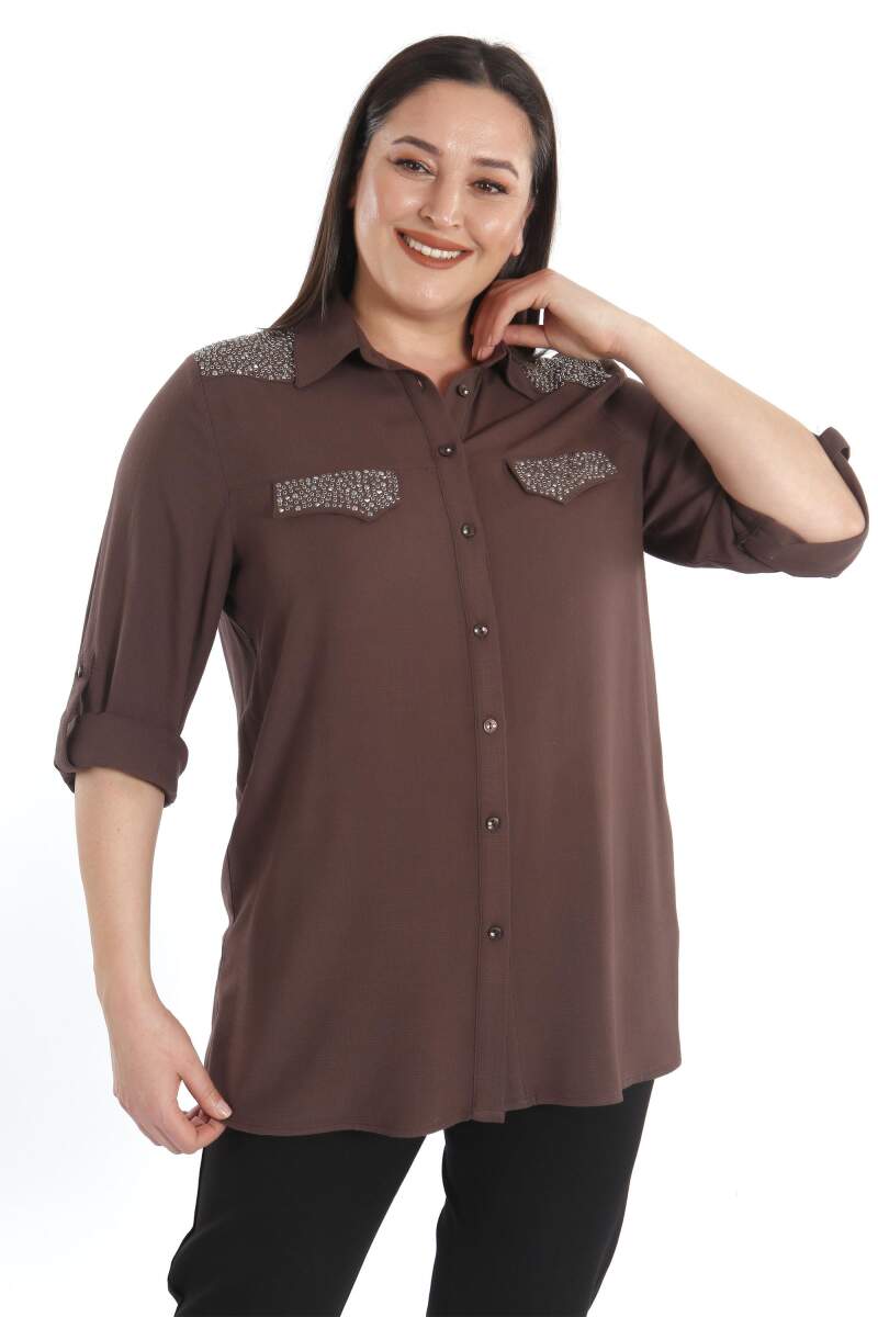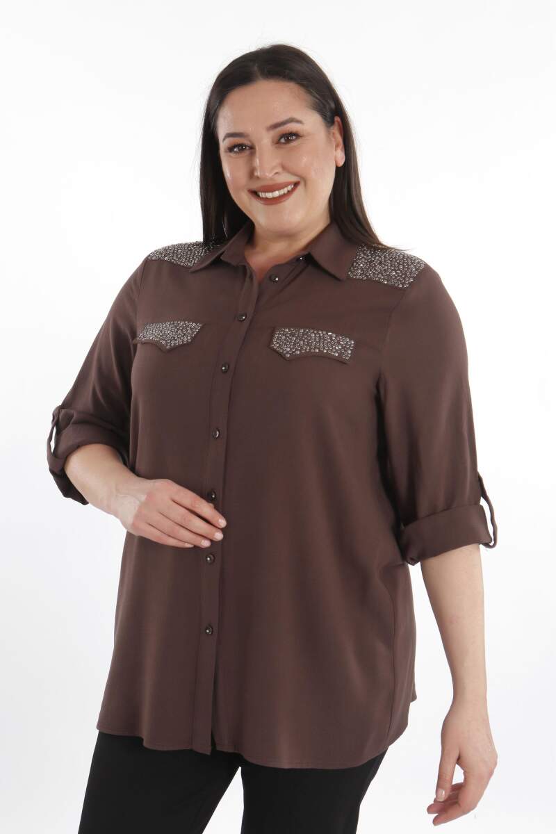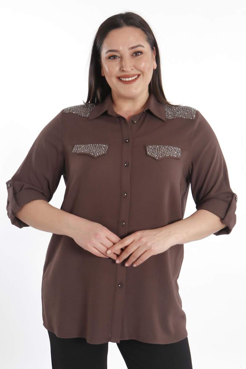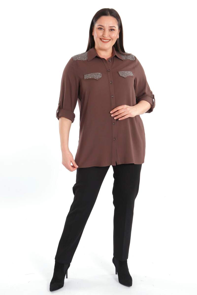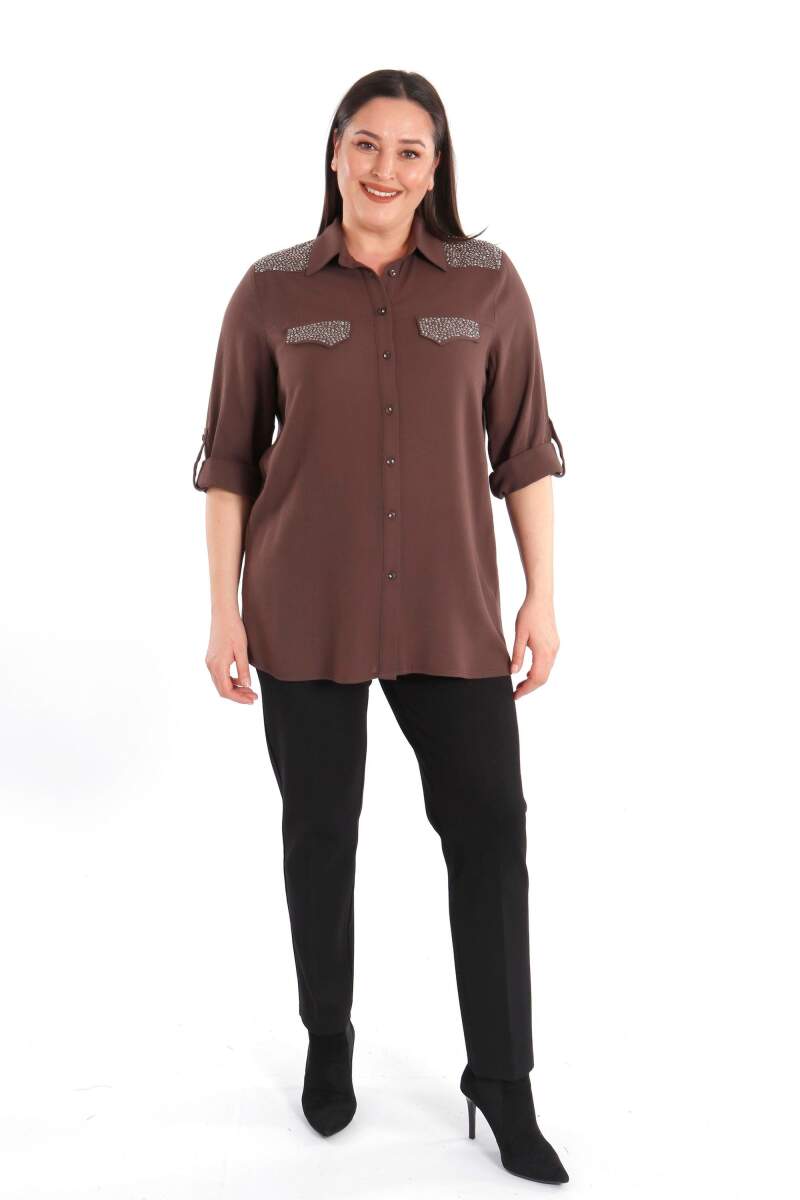 Trend42plus Büyük Beden Taş Baskılı Kahverengi Dokuma Gömlek , bahar ve yaz aylarının bitmeyen enerjisini gömlek ile yakala! Hoş dokusu ile seni büyüleyecek olan bu parçayı kumaş pantolonlar ile birleştirmek isteyebilirsin. Hafif dokusu ile rahatlığı hissederken en yoğun günlerin bile enerjik geçecek! :)