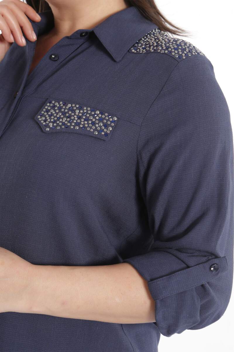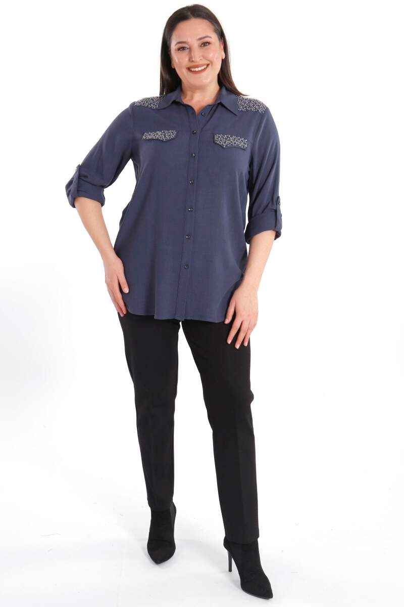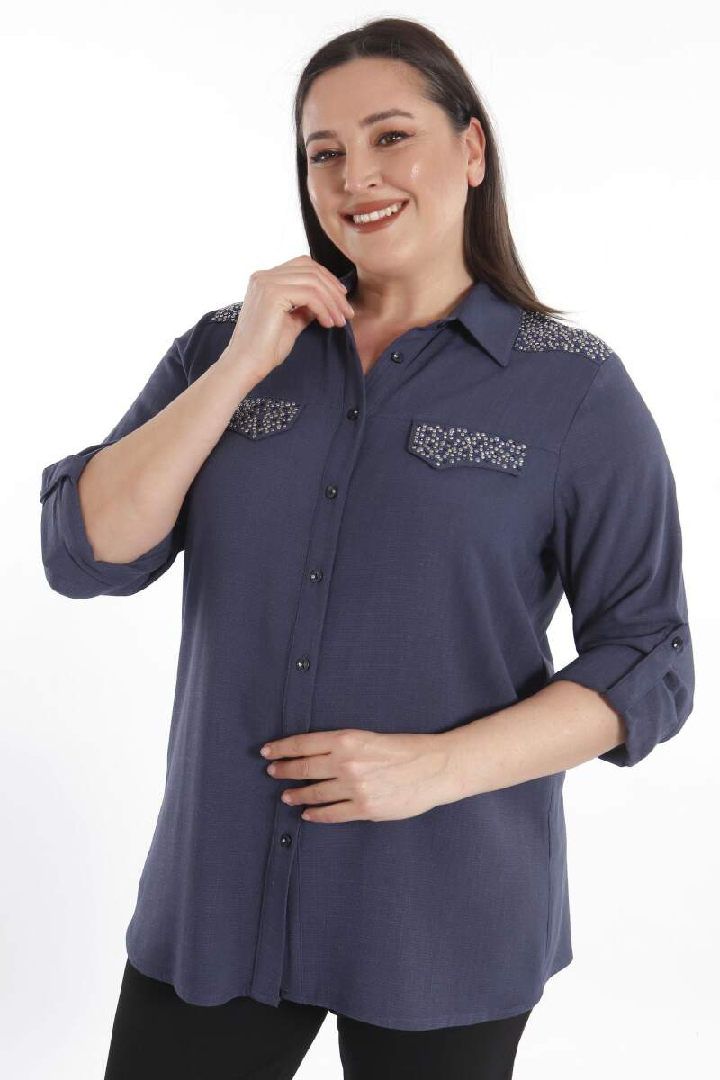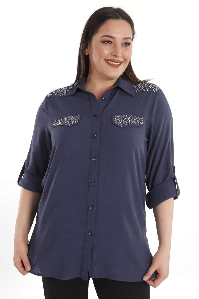 Trend42plus Büyük Beden Taş Baskılı Lacivert Dokuma Gömlek , bahar ve yaz aylarının bitmeyen enerjisini gömlek ile yakala! Hoş dokusu ile seni büyüleyecek olan bu parçayı kumaş pantolonlar ile birleştirmek isteyebilirsin. Hafif dokusu ile rahatlığı hissederken en yoğun günlerin bile enerjik geçecek! :)