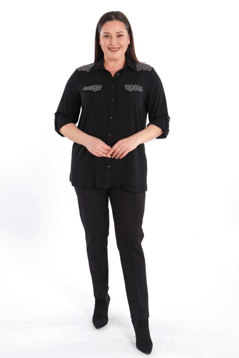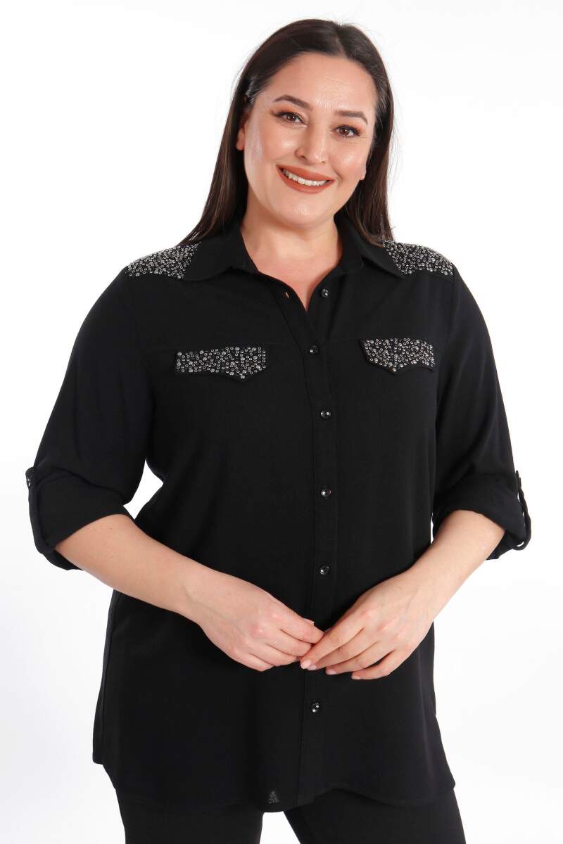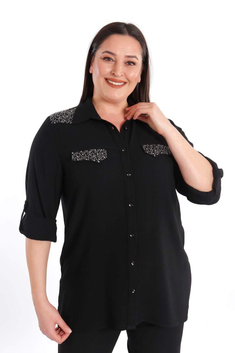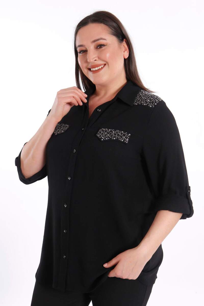 Trend42plus Büyük Beden Taş Baskılı Siyah Dokuma Gömlek , bahar ve yaz aylarının bitmeyen enerjisini gömlek ile yakala! Hoş dokusu ile seni büyüleyecek olan bu parçayı kumaş pantolonlar ile birleştirmek isteyebilirsin. Hafif dokusu ile rahatlığı hissederken en yoğun günlerin bile enerjik geçecek! :)
