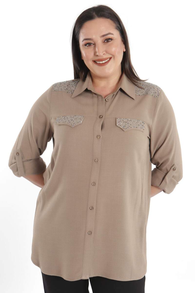 Omuz ve cep taş detayı ile dikkat çekiçi tasarım