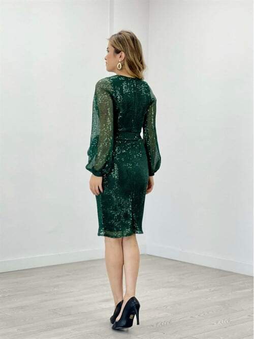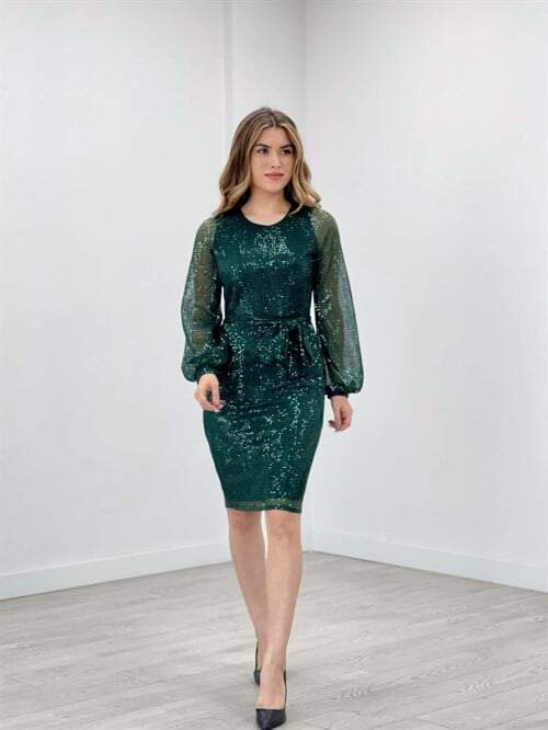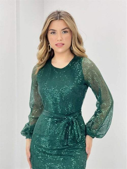 Tül Payet Tasarım Elbise - ZÜMRÜT YEŞİL