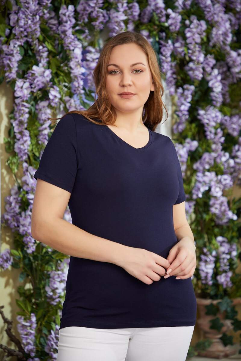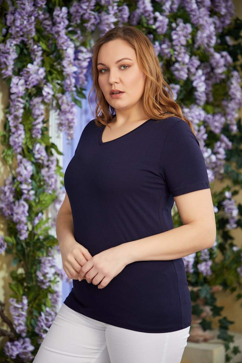 V Yaka Büyük Beden Lacivert Tişört