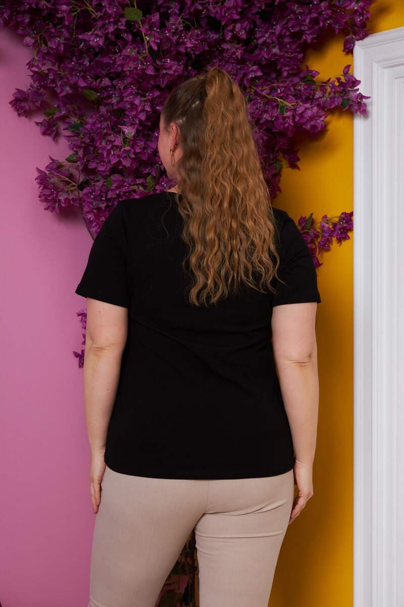 V Yaka Büyük Beden Siyah Tişört