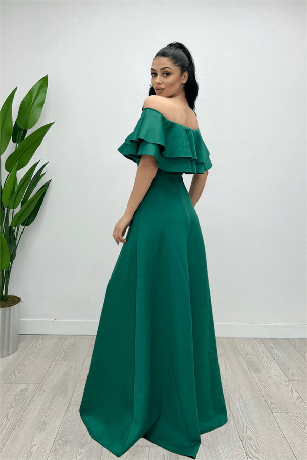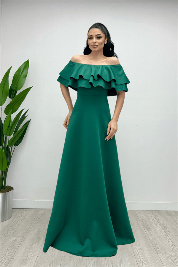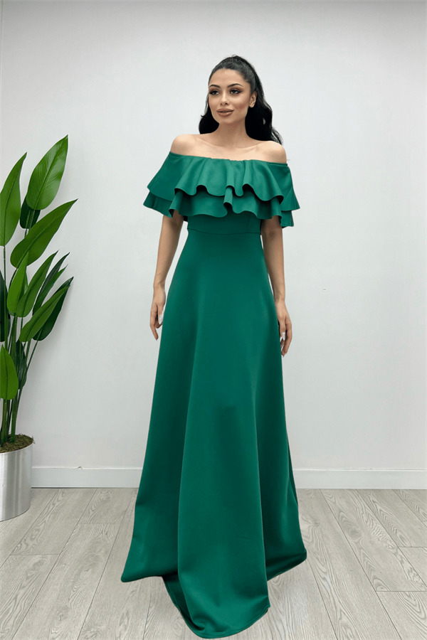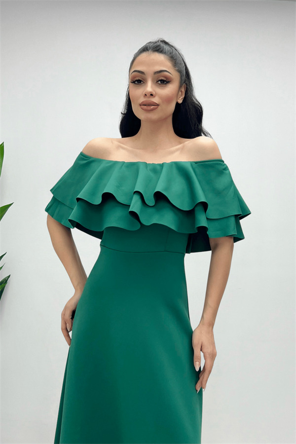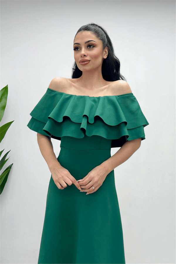 Volanlı Elbise - ZÜMRÜT YEŞİL