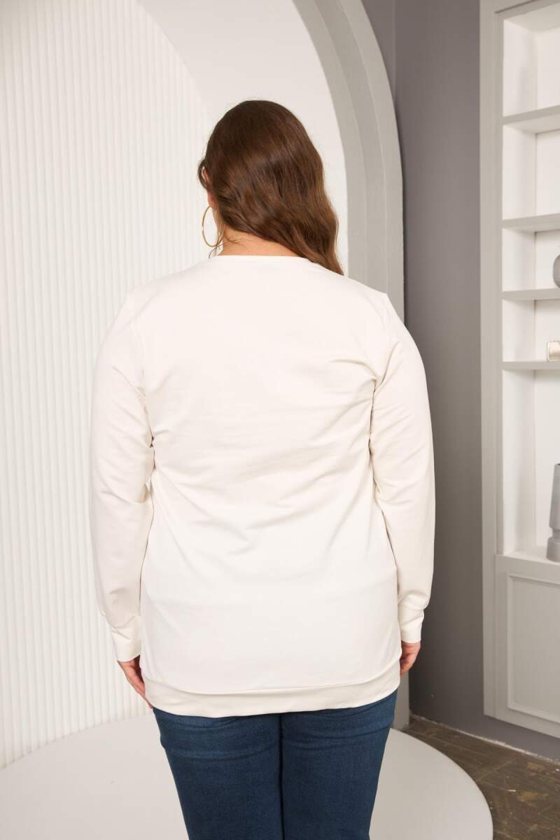 Yaka Zincir Detaylı Büyük Beden Sweatshirt Ekru