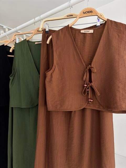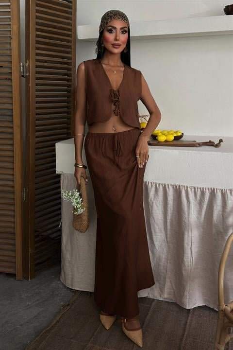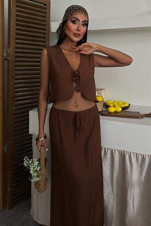 Yelek Önden Bağlamalı Uzun Etekli Takım 10192