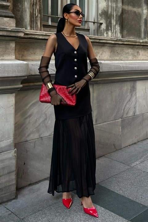 Yelek Ve Pilise Etekli Premium Takım 10096