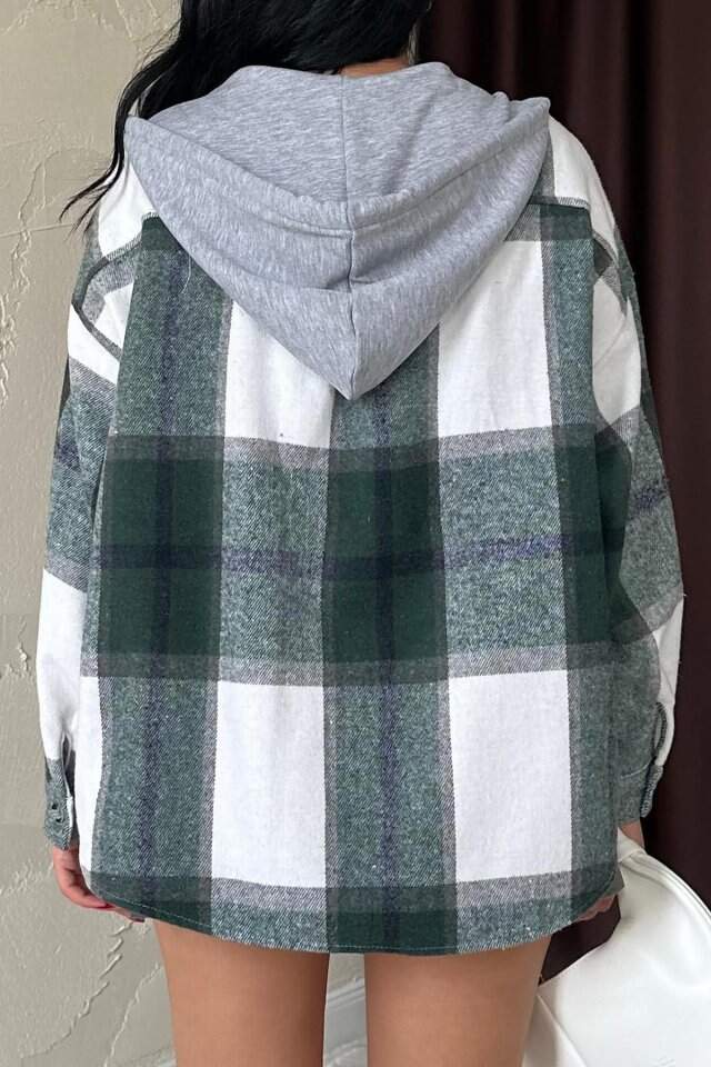 Zümrüt Kapüşonlu Oduncu Gömlek